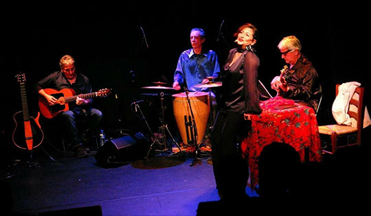 "Claudia Meyer, chanteuse à la voix chaude et sensuelle qui se balade au fil des langues et puise son inspiration dans la chaleur et la générosité des cultures méditerranéennes et d'Amérique latine." (Chansons sans frontière Infolettre Les Escales)